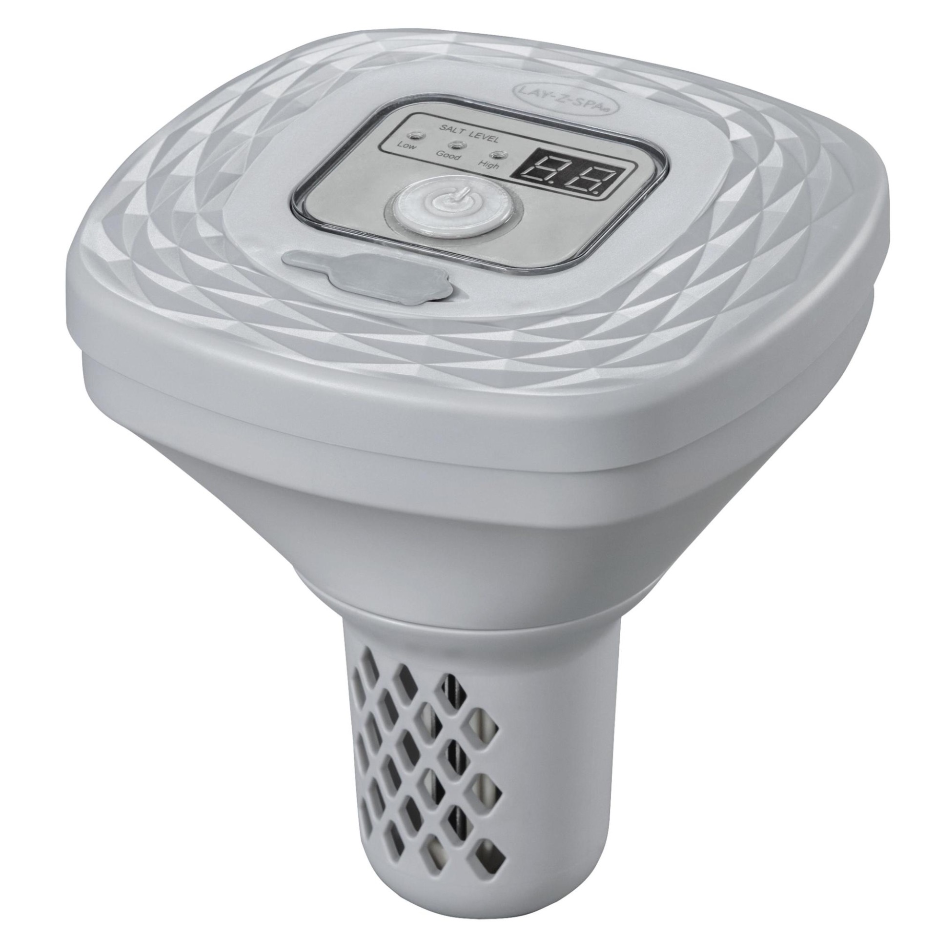 Ideal para spas ou pequenas piscinas com capacidade máxima de 1.400 L Usa sal para produzir 0,5 gramas de cloro por hora para manter o spa limpo enquanto é suave para a pele, olhos e cabelo A bateria recarregável integrada funciona por cerca de 8 horas e recarrega em 5 a 6 horas Entregue totalmente montado: nenhuma montagem é necessária! Painel de controle fácil de usar Inclui tiras de teste 3 em 1 e tiras de análise de água salgada que usam um sistema de correspondência instantânea de cores para medir cloro livre (0-10 ppm), pH (6,2-8,4), alcalinidade total (0-240 ppm) e sal (0-8.000 ppm). Conteúdo: 1 eletrolisador de água salgada, 50 tiras de teste 3 em 1, 25 tiras de teste de água salgada