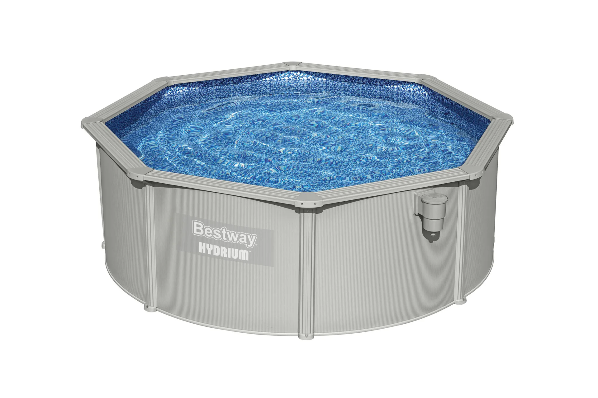Piscina redonda com paredes de aço galvanizado de 0,3 mm de espessura.