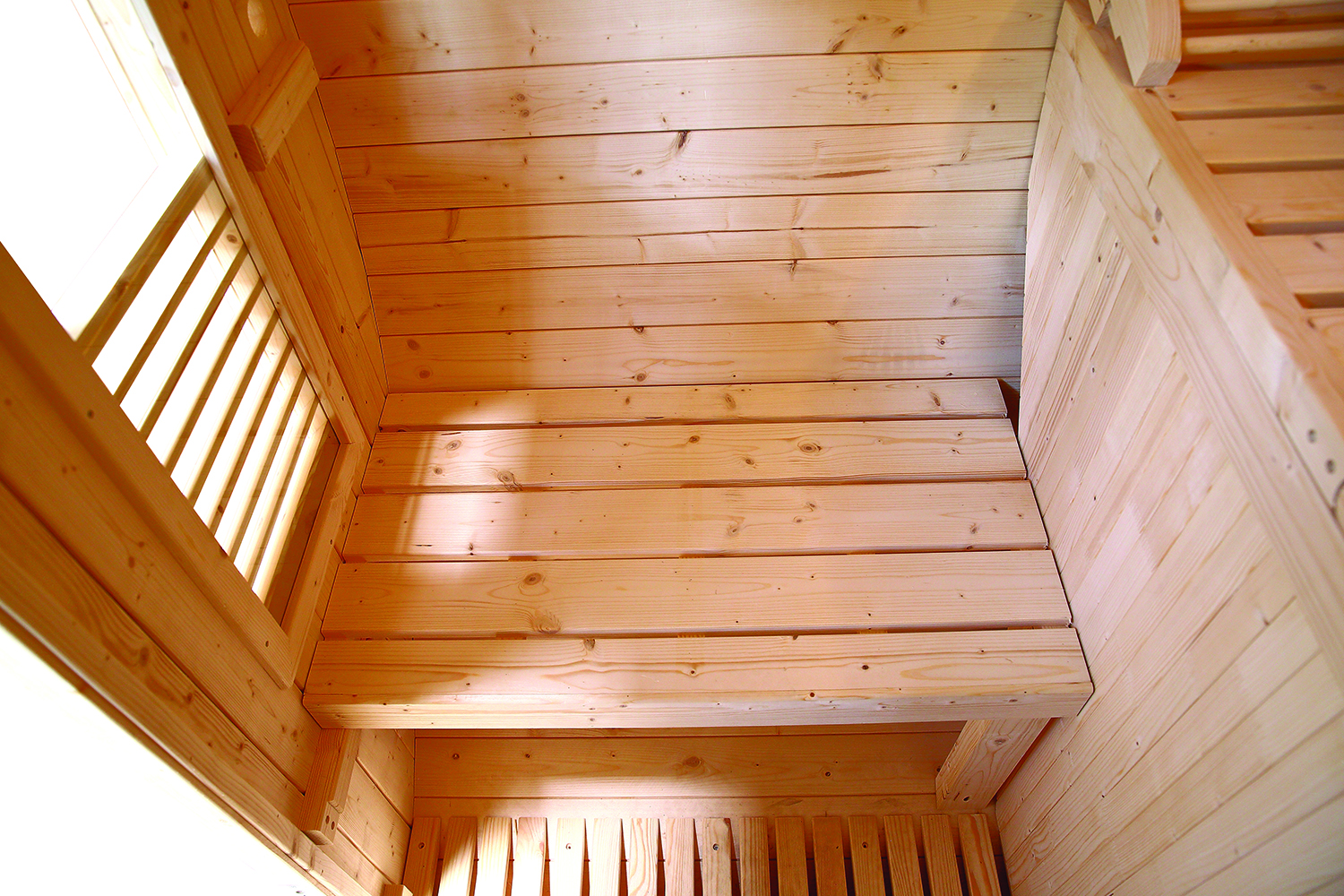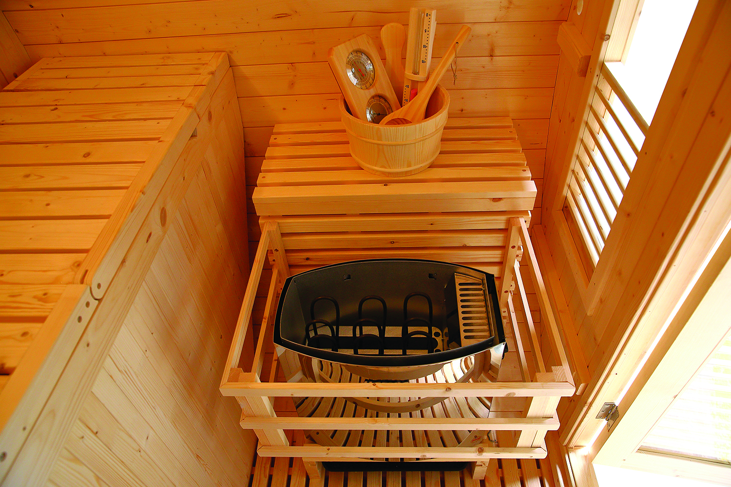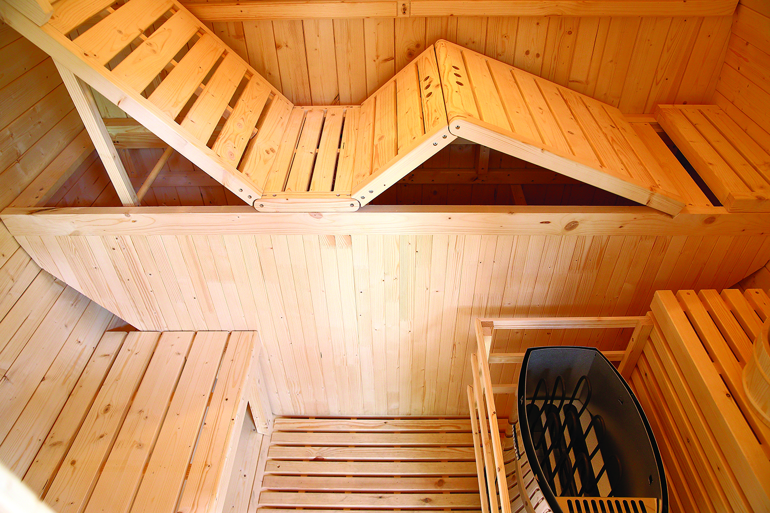 Desfrute de uma sauna espaçosa e elegante, concebida para relaxar ao ar livre.
