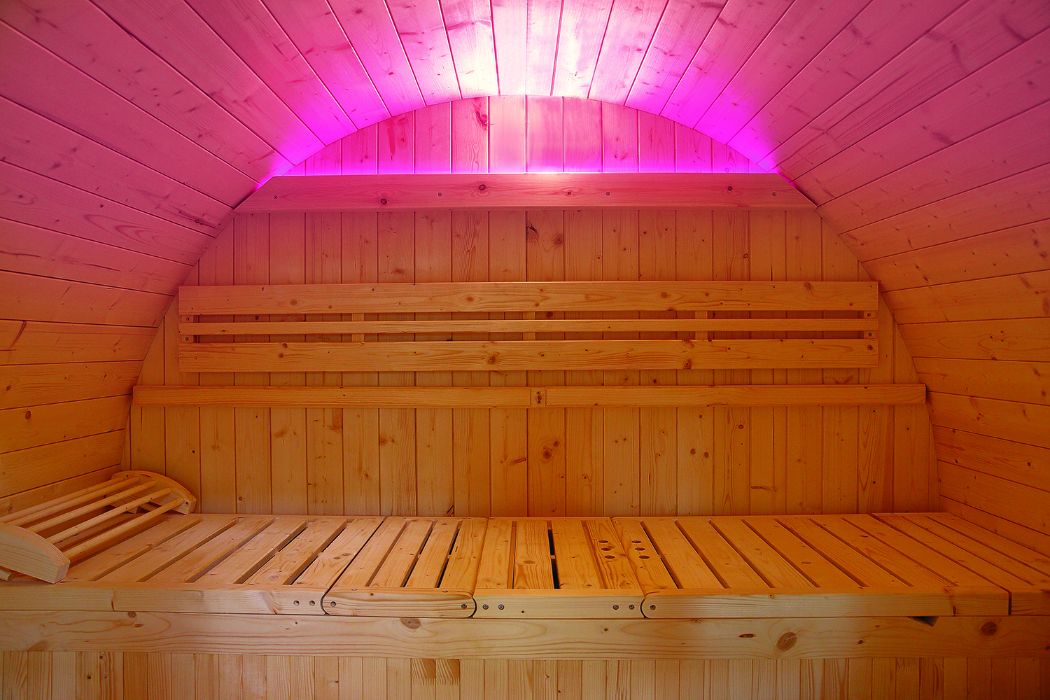 Relaxe a dois no conforto da Gaïa Bella. O calor do fogão a vapor estimula a circulação sanguínea e acalma os músculos e as articulações. Reforça igualmente o sistema imunitário e elimina as toxinas através da transpiração. O seu momento de relaxamento é completado com um jogo de cores propício à cromoterapia.