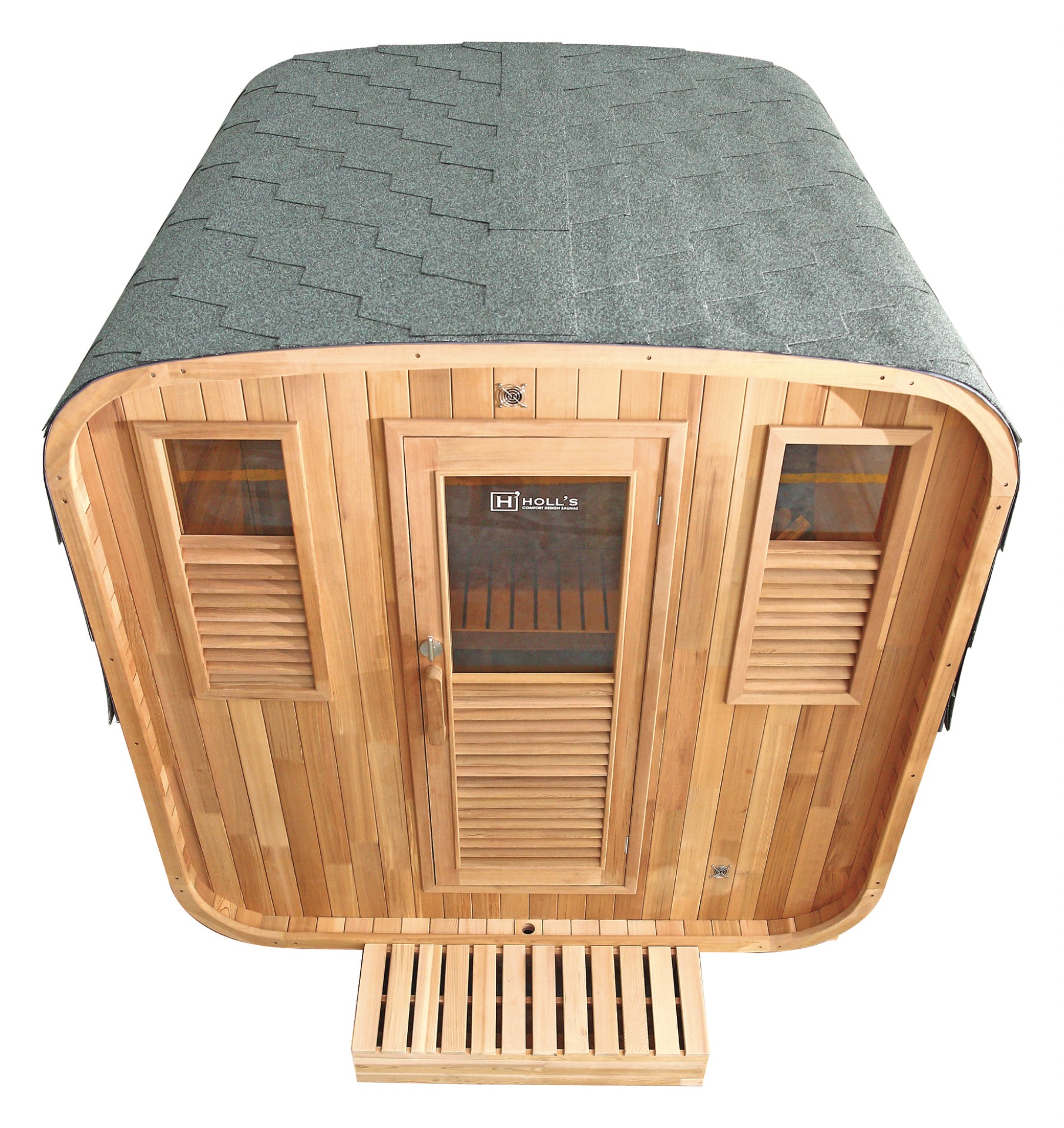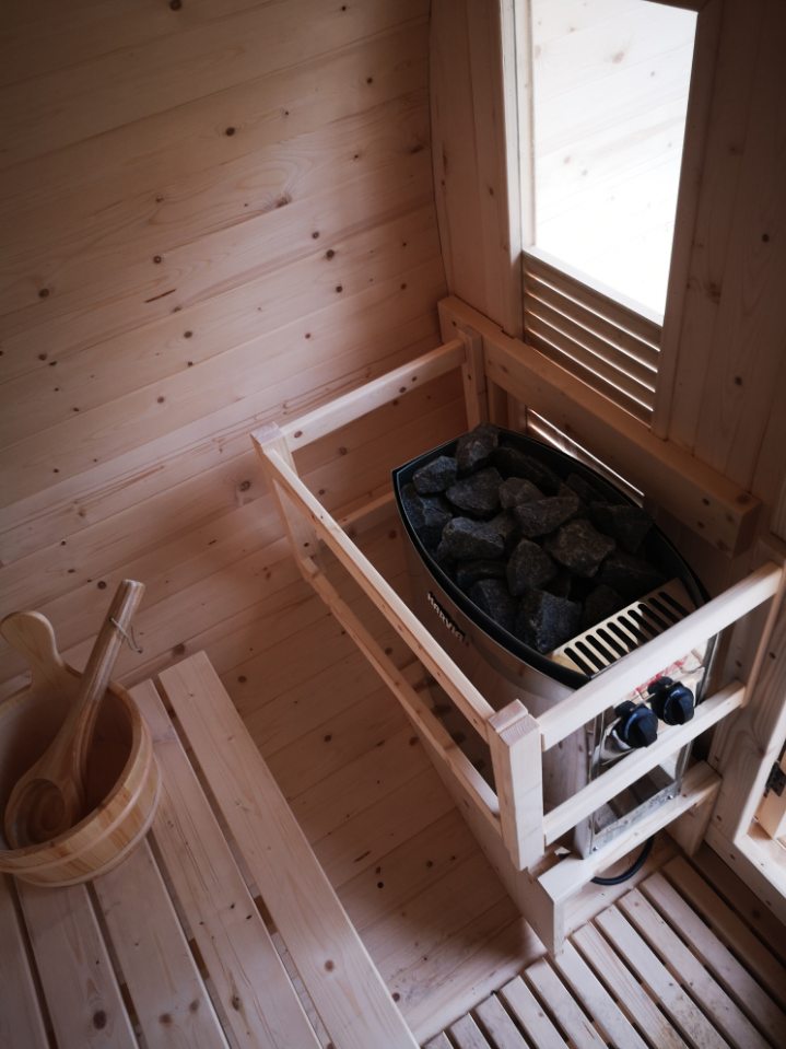 A cabina Gaïa Bella é composta por dois bancos em dois níveis. Aproveite ao máximo a sua sessão, recostando-se no banco superior retrátil, cuja ergonomia foi estudada até ao apoio de cabeça integrado.Esta cabina, com o seu charme escandinavo, valorizará o seu jardim com a sua madeira de abeto clara e as suas dimensões contidas. As suas janelas com persianas dão um toque de estilo à forma redonda desta sauna de exterior.