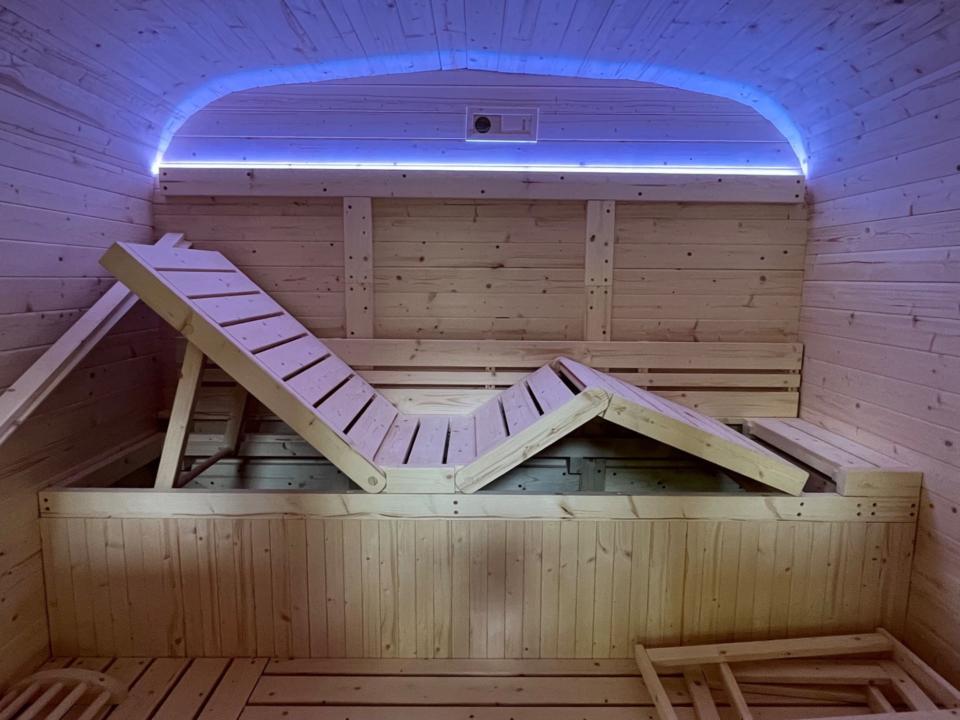 Relaxe a dois no conforto da Gaïa Bella. O calor do fogão a vapor estimula a circulação sanguínea e acalma os músculos e as articulações. Reforça igualmente o sistema imunitário e elimina as toxinas através da transpiração. O seu momento de relaxamento é completado com um jogo de cores propício à cromoterapia.
